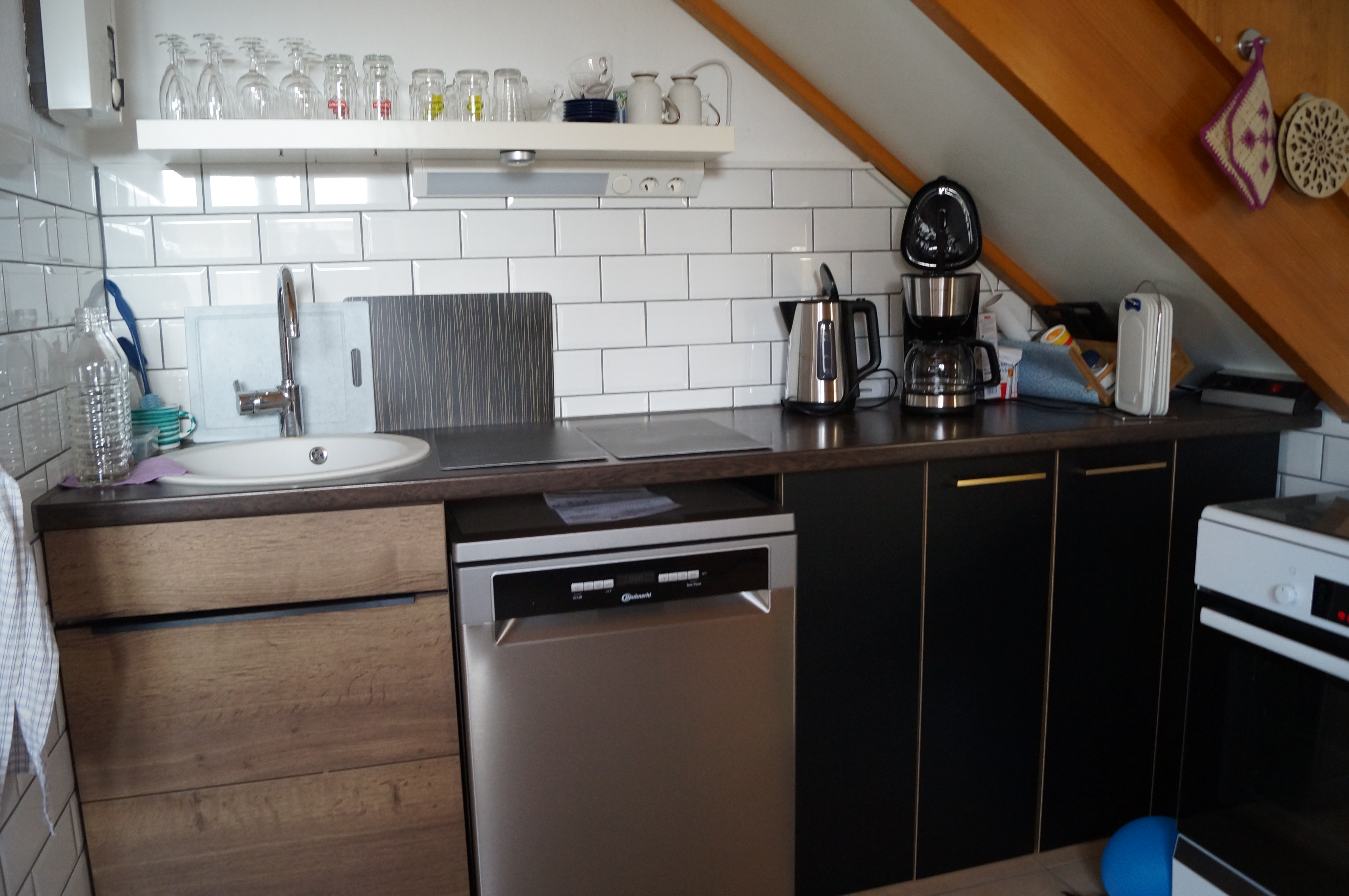 (Induktionsherd, Geschirrspülmaschine, Kaffeemaschine, Toaster, Soda-Sprudler, Mixer, ausreichend Zubehör….)